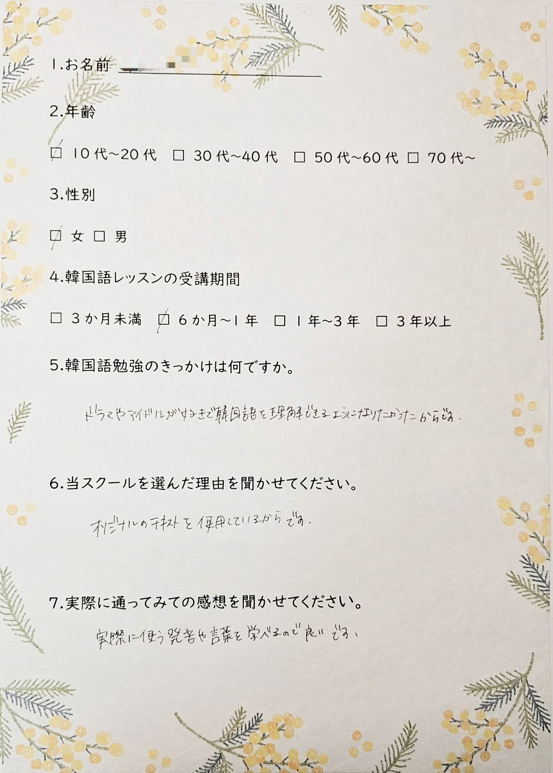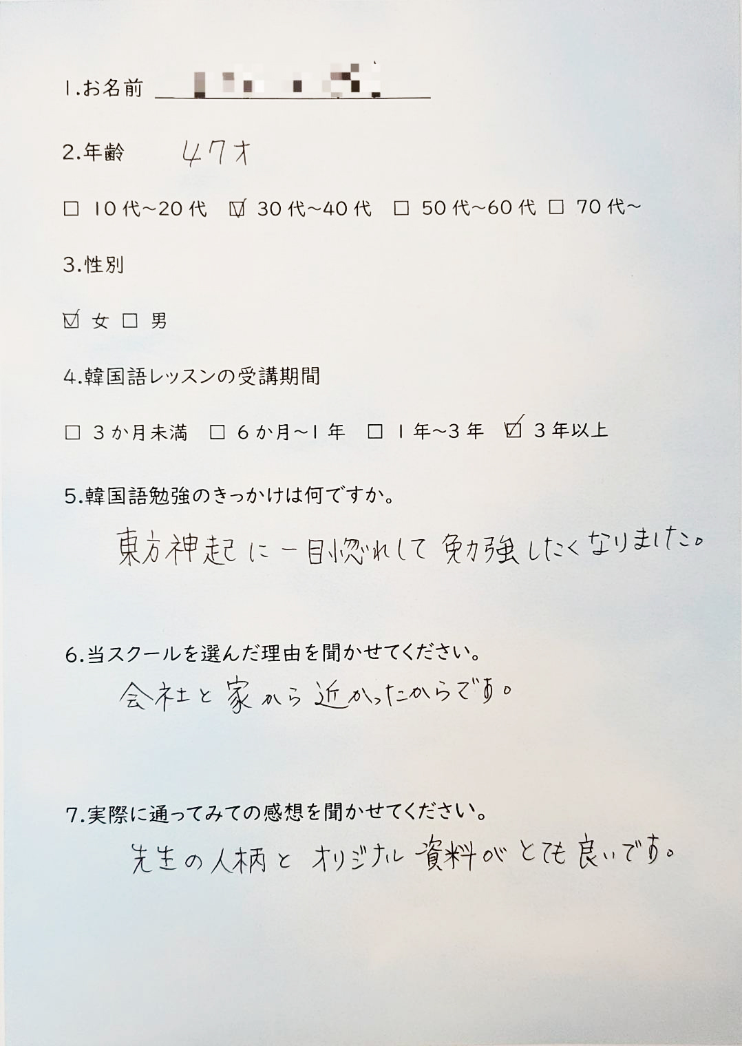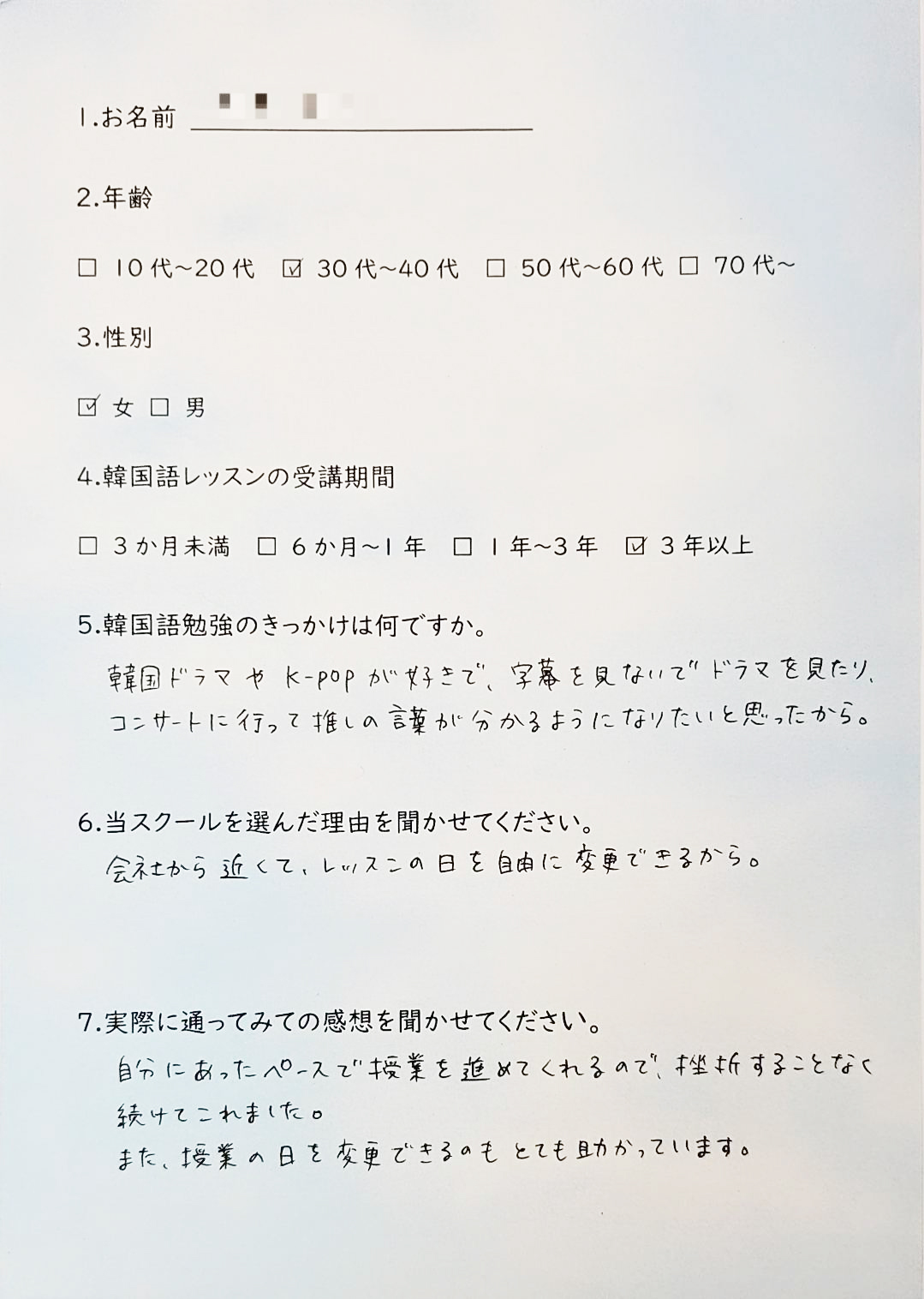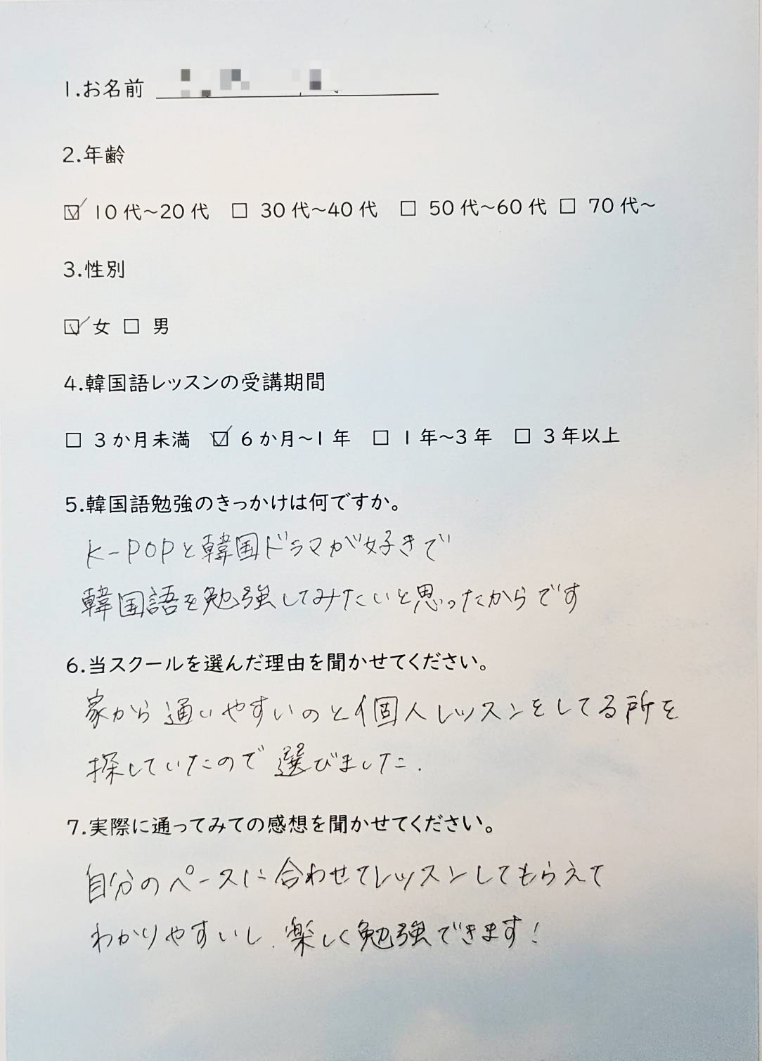 横浜韓国語スクールに通われている生徒さんに、韓国語を勉強するきっかけや、教室の感想を伺ってみました。