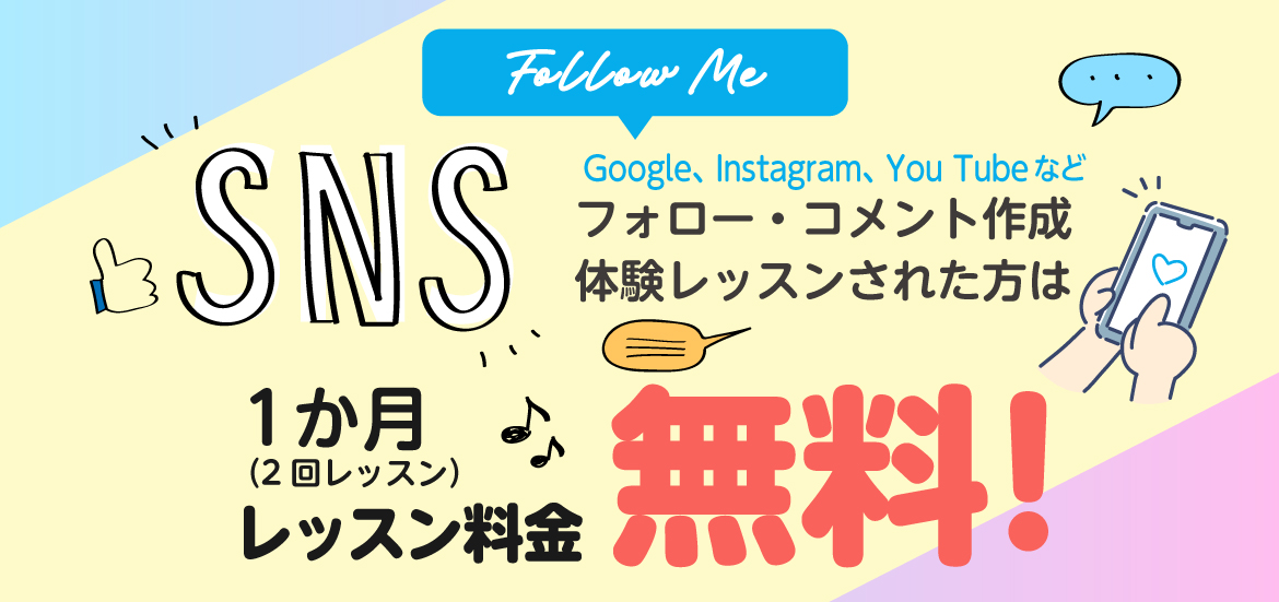 口コミ作成+体験レッスンで、1ヶ月(2回レッスン)無料!!