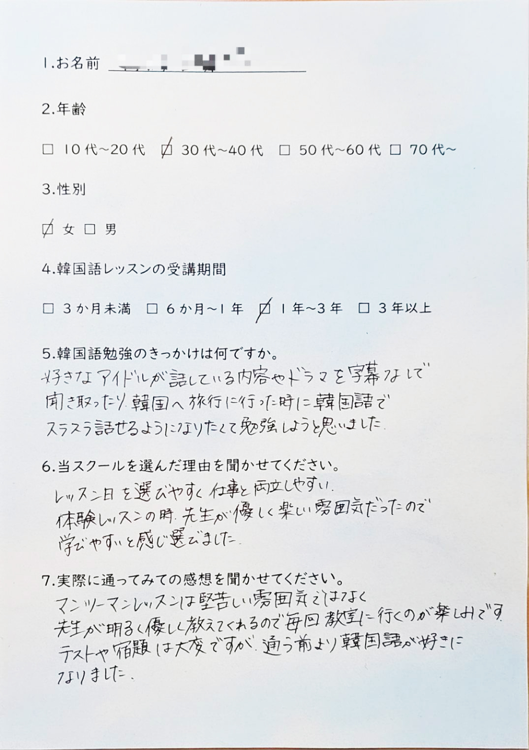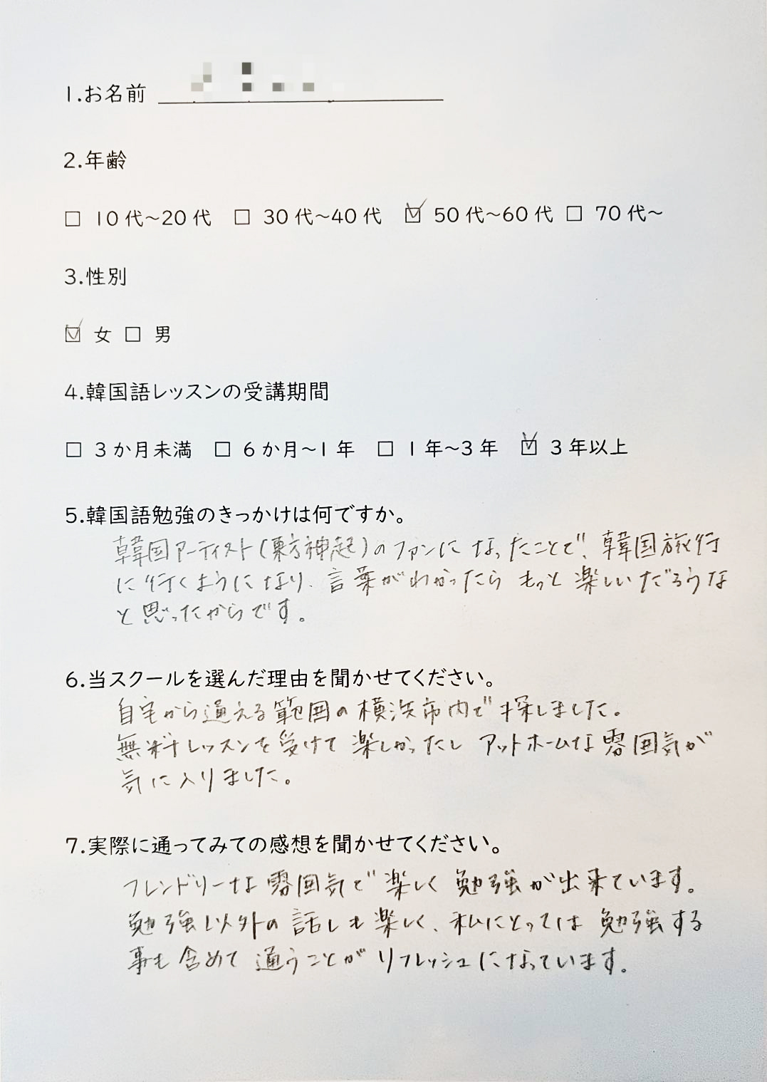 横浜韓国語スクールに通われている生徒さんに、韓国語を勉強するきっかけや、教室の感想を伺ってみました。